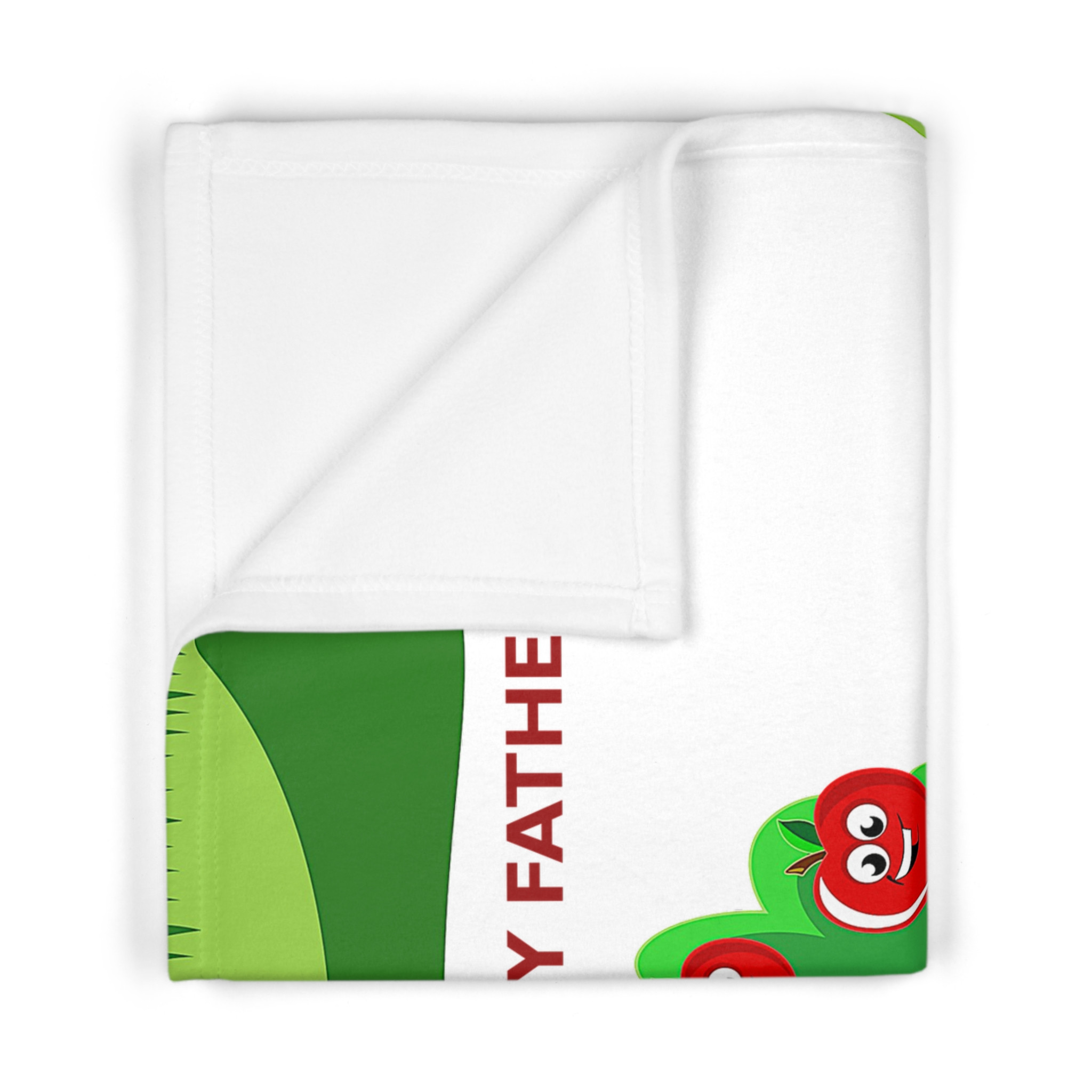 “Apple of My Father’s Eye Baby Blanket.“ Wrap your baby in fluffy softness. For lasting care, wash in cold water and tumble dry. Please allow, “on average,” 7-10 days for item production and arrival.