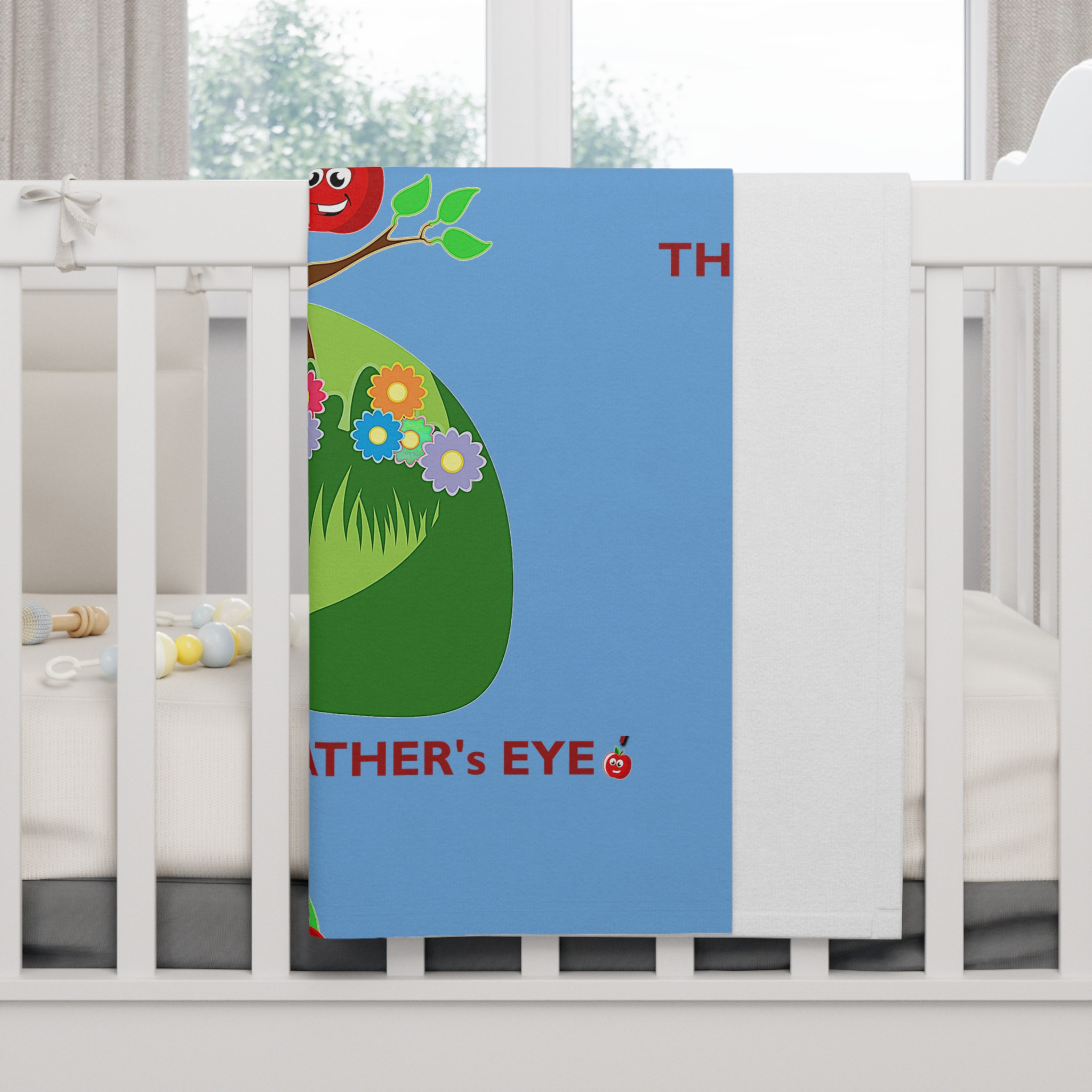 “Apple of My Father’s Eye Baby Blanket.“ Wrap your baby in fluffy softness. For lasting care, wash in cold water and tumble dry. Please allow, “on average,” 7-10 days for item production and arrival.