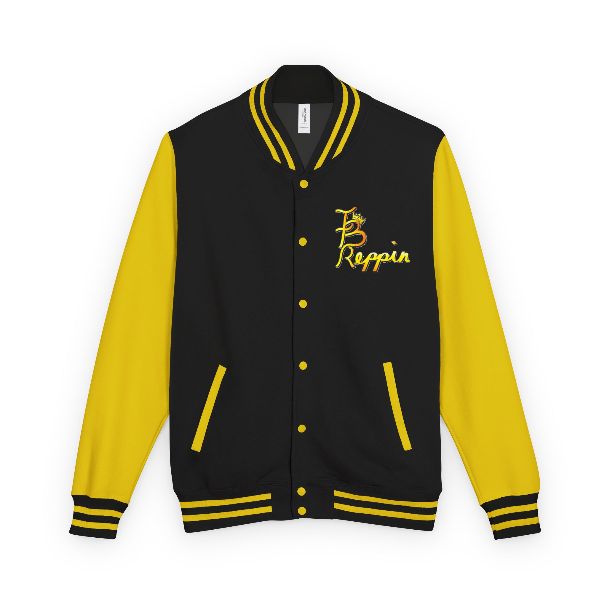 “Gold Tried In The Fire Letterman Jacket.” Reppin and looking fashionable has never been easier with this IBReppin jacket. This classic letterman jacket is ready to take your everyday casual fashion a notch higher to reflect just how you reppin. Sold in black with yellow sleeves. Please allow “on average,” 7-10 days for item production/delivery.
